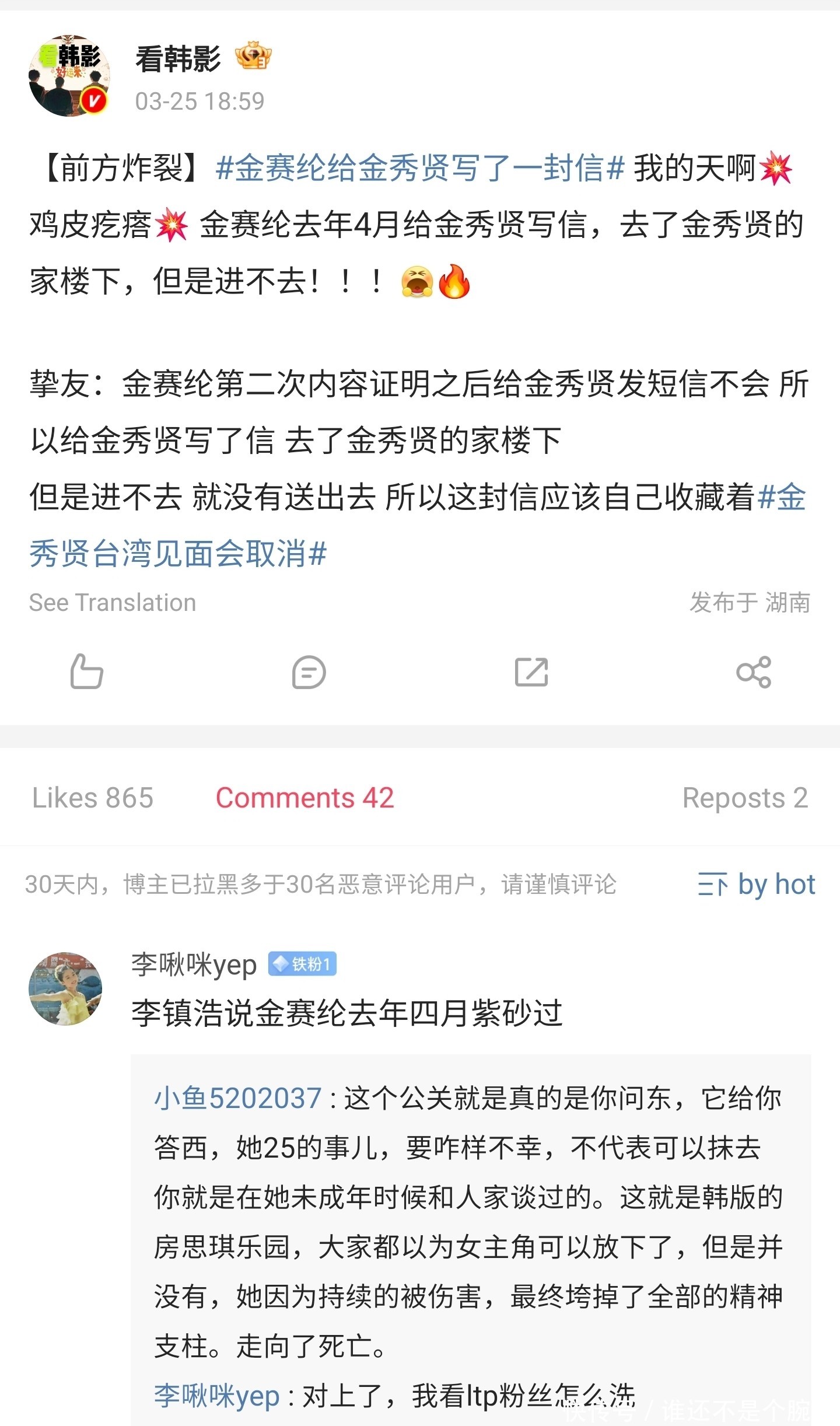 这封信具体内容我们不知道,但这个时间点,已经能从侧面证明,当时金赛纶已经是没办法发送网络消息给金秀贤了,要不然也不会去“写信”,然后跑到金秀贤家里楼下去送。