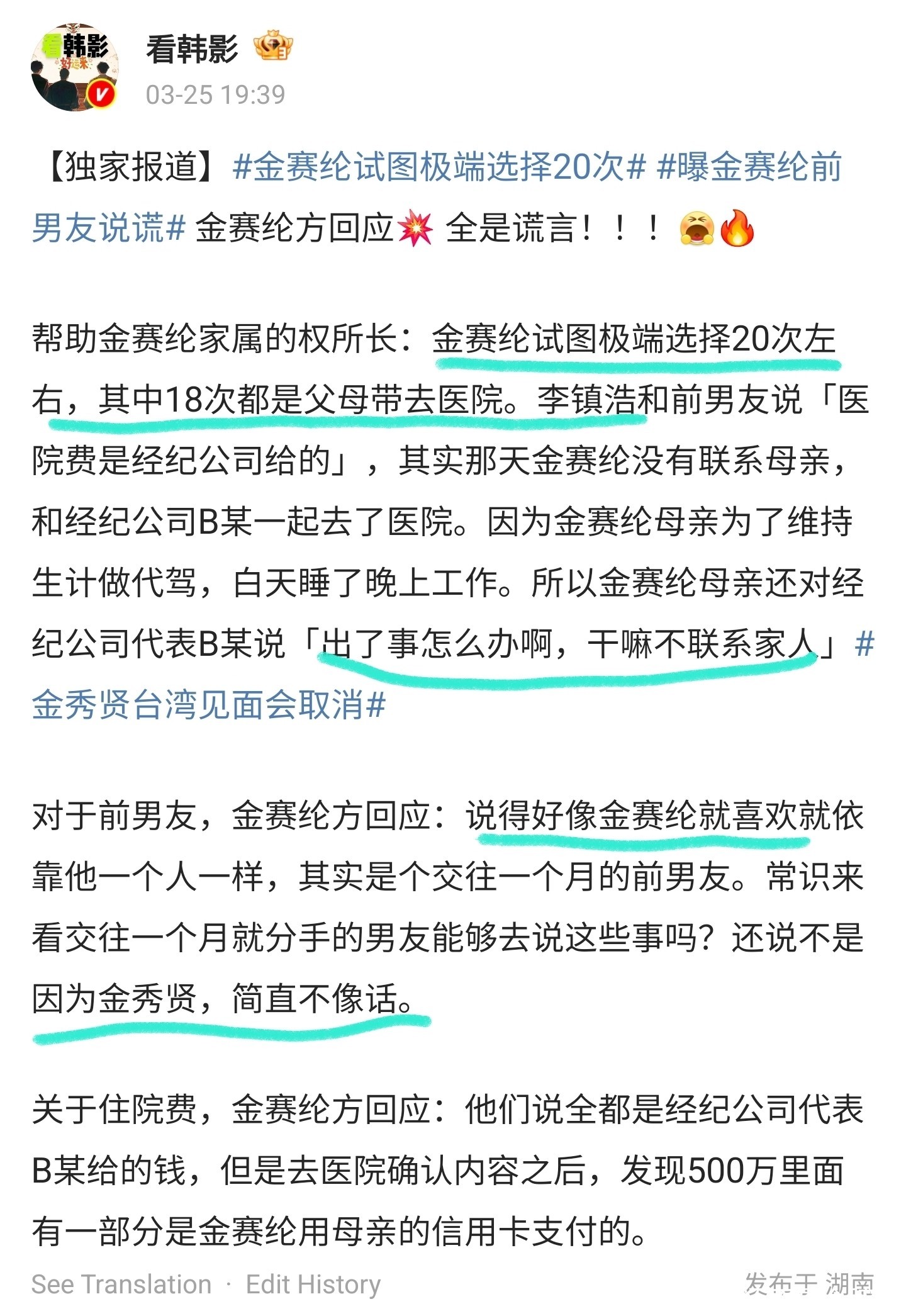 至于金秀贤公司给金赛纶付医院费用的事。